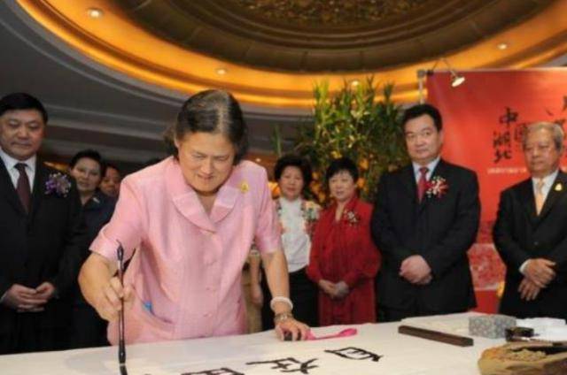 因为从小受到了诗丽吉王后的影响,是以诗琳通公主对中原文化产生了浓厚的好奇。她切身在大使馆中选出了九位中国憨厚,用来学习谈话和书道。